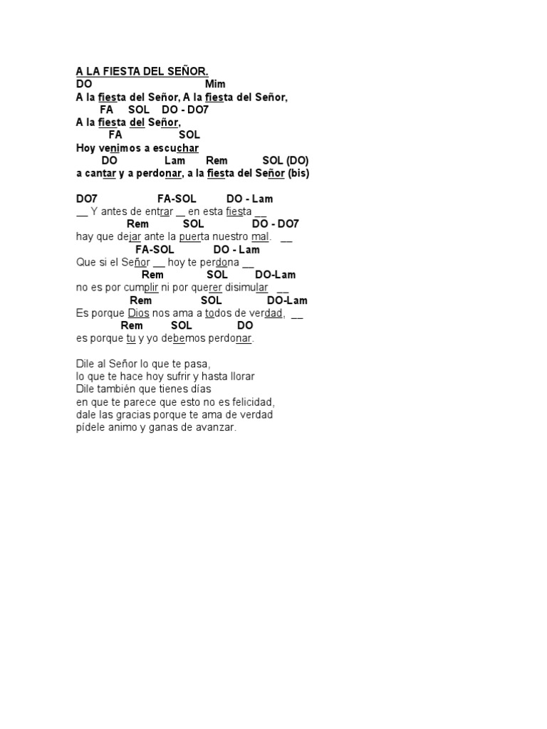 Acordes Canto A La Fiesta Del Senor - B5 g5 d5 a5 tu eres todopoderoso, eres grande y majestuoso.