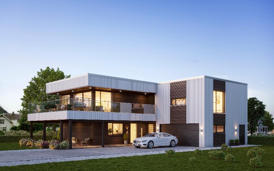 Ferdighus Moderne : Vi har store og sma ferdighus, tilpasset bade skra og flat tomt. Ferdighus Moderne - Byggesettet moderne ferdighus montert utvendig.