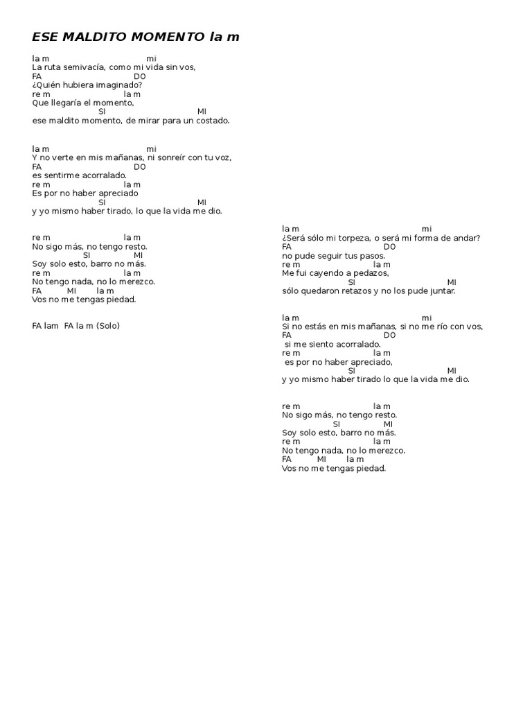 No Te Va A Gustar Ese Maldito Momento La M Ocio Entretenimiento General - 1 bm f# bm d a d d a g (un golpe por acorde) que lindo que era verlos caminando, un alma sola dividida en dos, f# bm g f# la orilla de ese mar los encantaba, quedaba todo quieto alrededor.